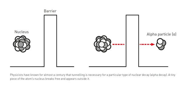 物理学家近一个世纪以来就知道,隧穿对于一种特定类型的核衰变(α衰变)是必需的。原子核的一小部分挣脱出来并出现在原子核外部。