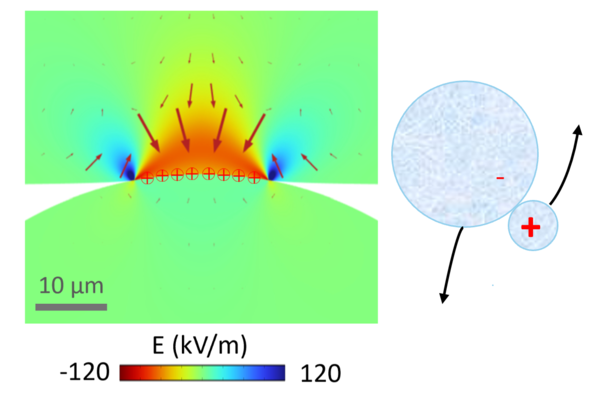在云层高海拔区域的低温下,冰的挠曲电系数决定了大小冰球相撞时,冰粒更易带正电,而霰粒易带负电。随着冰粒随风向上运动,雷暴云上层便积累了大量正电荷。而霰粒会一直向下坠落,这就导致雷暴云的中下层主要带负电。然而,在靠近地表、温度相对较高的云层区域,冰的挠曲电系数符号突然翻转,这就导致在该区域碰撞时,霰粒反而易带正电,于是形成了雷暴云底部的一小片正电荷区域。
