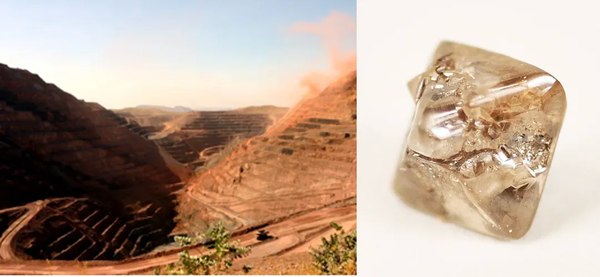 阿盖尔钻石矿及其出产的棕色钻石 图片来源:Tom Backus(左),Robert M. Lavinsky(右)/维基百科