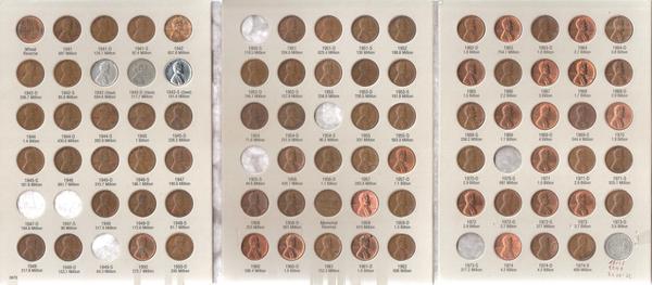 从1941年到1974年的一美分硬币收藏,可以看到1943年的一美分硬币为钢制。图片来源:Monocletophat123/wikipedia
