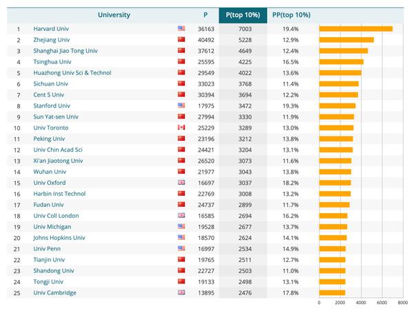 如果将排名参数改成P(top 10%),那么“世界第一大学”的宝座就属于美国哈佛大学,浙江大学排名第2,斯坦福大学也直接跃升至世界第8。排名前10的大学里,有7所中国大学。