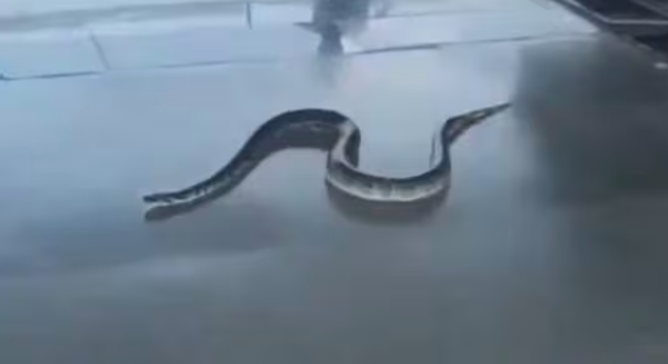 2024年,一条印度蟒(Python molurus)出现在印度北部被称为“瑜伽之都”的瑞诗凯特小镇火车站。(图片来源:@stirpathi111/X)