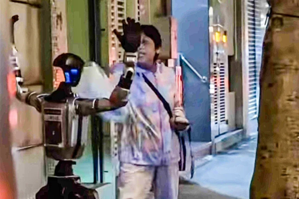 这一幕恰巧被路过的行人拍下。视频中,面对老人的怒吼,机器人起初一动不动;随后,它缓缓举起双手,做出类似“投降”和致歉的姿态,尽管这一举动一时并没有平息老妇人的怒火。