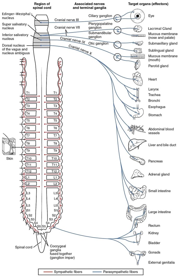 自主神经系统组成(图片来源:OpenStax College – Anatomy & Physiology, Connexions Web site. CC BY 3.0)